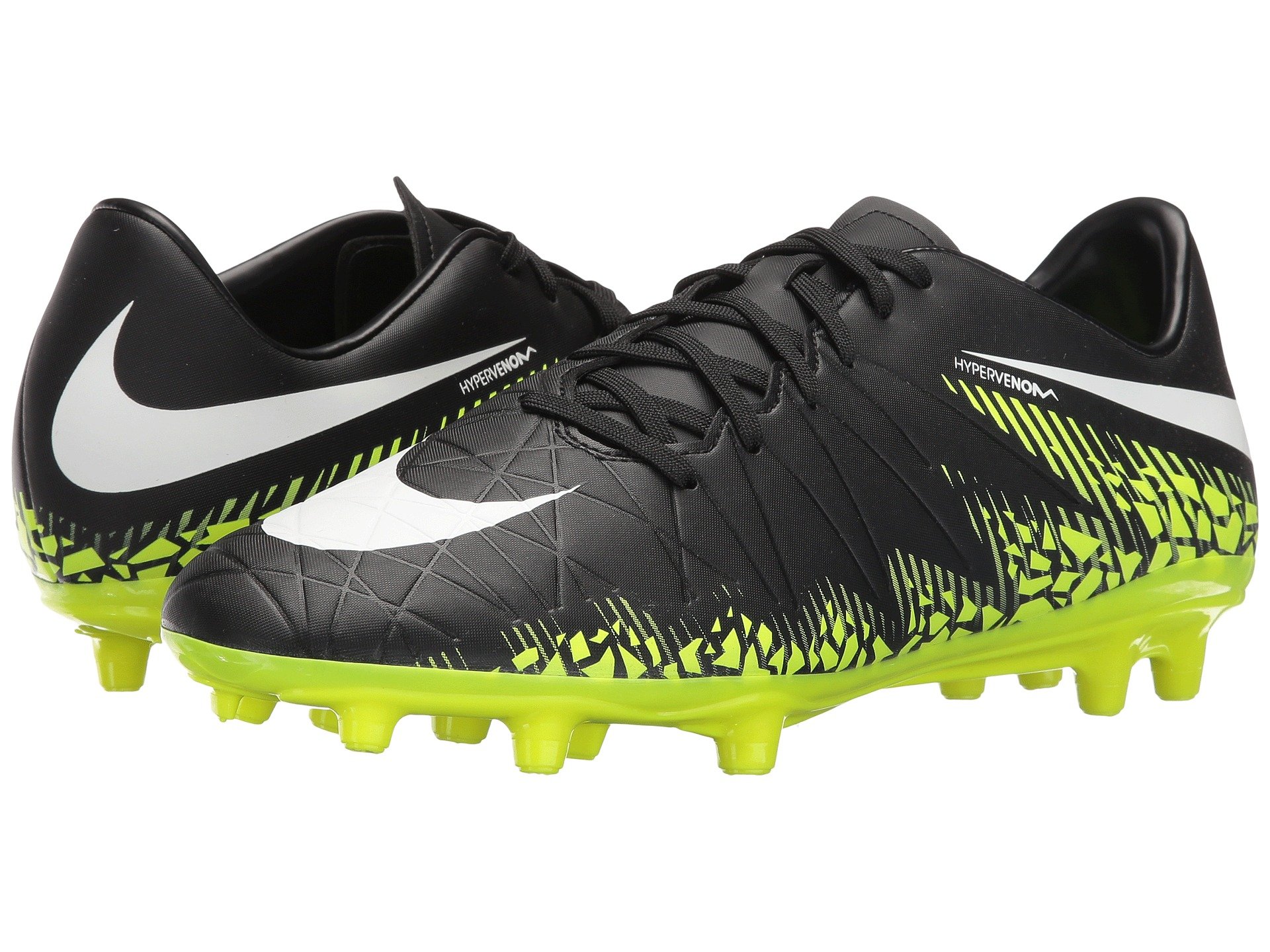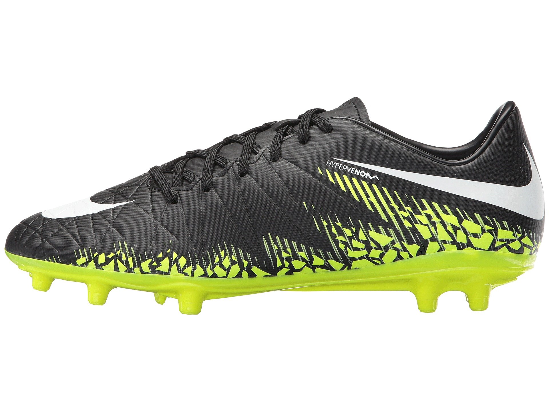 | Product Information SKU: #8532011Getting to the goal is a breeze with the high performance power of the Nike? Hypervenom Phelon II FG soccer cleat. Soft, thin synthetic leather upper for a great fit and ball feel.Asymmetrical lacing enhances ball control and strike zone.Contoured last mirrors the shape of the foot for a glove-like fit.Full length TPU plate for a supportive, responsive feel.Round forefoot cleats for multidirectional traction.Agility traction pattern provides faster release and maximum responsiveness.Firm ground cleats ideal for use on short grass fields that may be slightly wet but rarely muddy.Imported.Product measurements were taken using size 12, width D - Medium. Please note that measurements may vary by size.Weight of footwear is based on a single item, not a pair.Measurements: Weight: 10 oz |