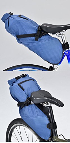 I keep things in order. Although there is rigidity only in the vicinity of the saddle, there is nothing to say that it is especially unspoiled as it can wind the second half if there is nothing to put in. (It is a trick to win over the tire side rather than winding upwards and finally clip on the upper side.) Capacity is quite a thing ... · · · 2 days' underwear, socks. Lightweight tent (things used in mountain climbing), Air 150, wheel glove (related equipment) is about entering. Although it was not possible to enter coffel + gas, air mat indeed as expected, it was able to fix with ca. 100 rubber net at the top of the main body, so it seems that you can camp touring enough. Since there is no waterproof, water repellent kind, spray it if necessary, vinyl packing the contents should be good. As you guys, there is a belt that you do not know what to use for one. Conversely speaking, please use it like it! ... I am using it as a belt to lift bags from the saddle. This will ensure clearance between the tires, and the shaking of the bag to the left and right is also reduced. (As we will push the bag against the saddle) A bit disappointing is to stop the entrance with a clip. Because of this, if you become a bread roll, your mouth will open with just 1 volume, 2 volumes. As sown in the photo sewn the Velcro which I bought at 100, now there is no problem. This is cheap. Although I will not go with all ok as it is bought, I think that the basic performance as a large saddle bag is sufficiently equipped. It is not too bad to finish it as an item that suits you by a piece of ingenuity.