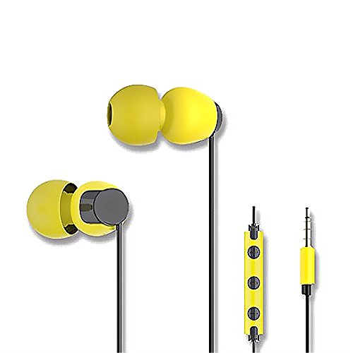 Earbuds Bass Stereo Earphone In Ear Headphones Wired 3.5mm jack 10mm Drivers with Microphone and Volume Control Color Yellow