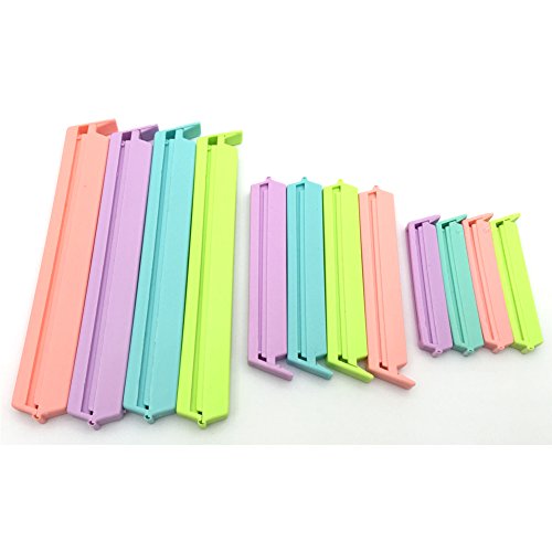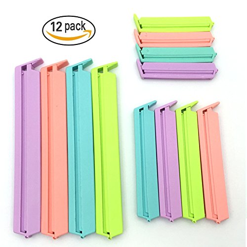 JIALEEY Plastic Sealing Clips Bag Clips for Food and Snack Bag Clamp Sealer For Kitchen Home Storage, Set of 12 Assorted Colors (2.7 in,3.7 in,5.5 in)
