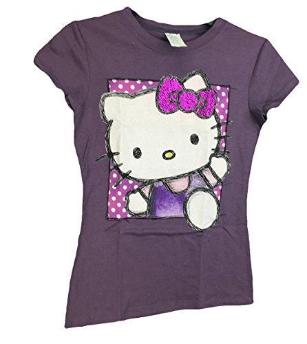 Hello Kitty (Style 14) Sketch Outline Purple Glitter Bow Girls T-Shirt 6/8