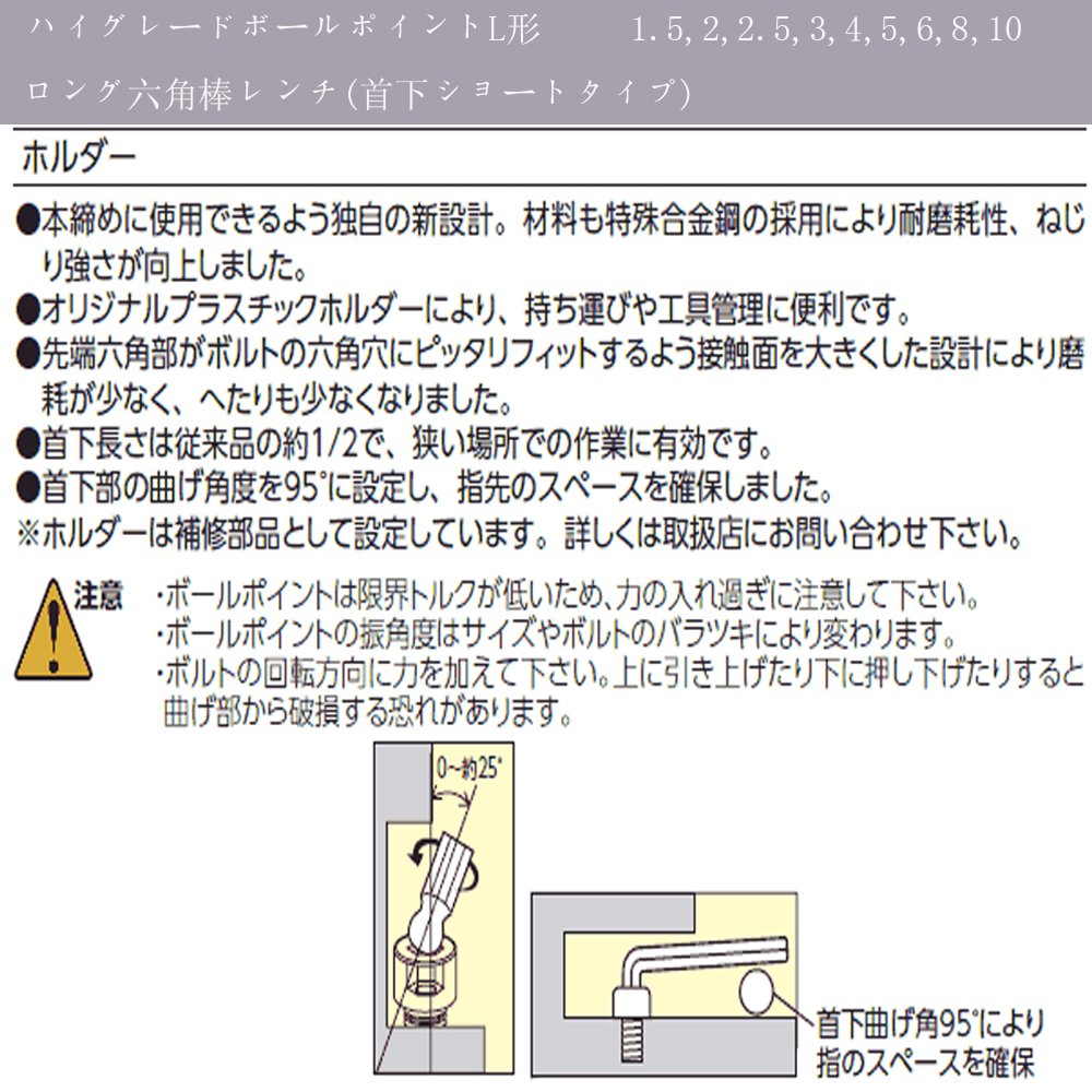 Ball point shape allows you to insert into a hexagonal hole diagonally even in narrow places and obstacles.