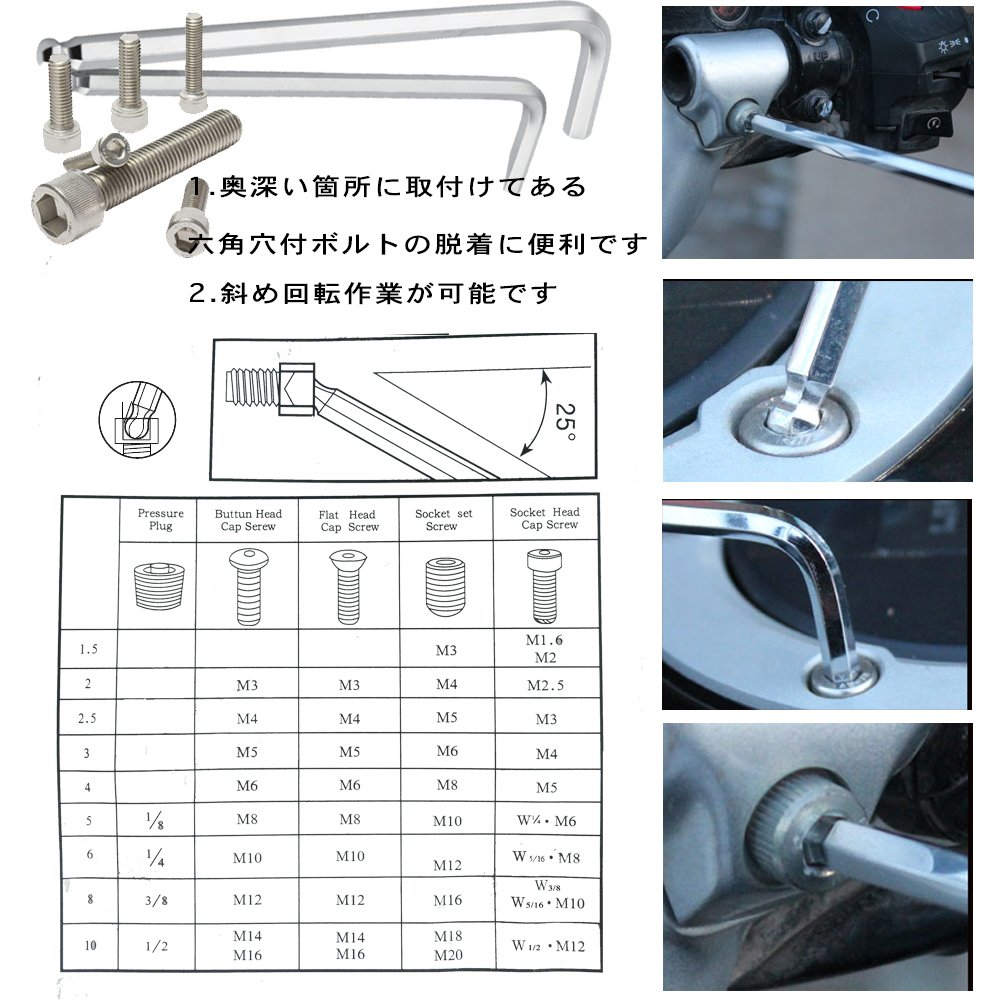 As a car maintenance, as well as a bike maintenance, ship repair, agricultural equipment repair, furniture assembly, factory, garage use, business trip repair tool, household tool also convenient, hex wrench mm size set, inch size set