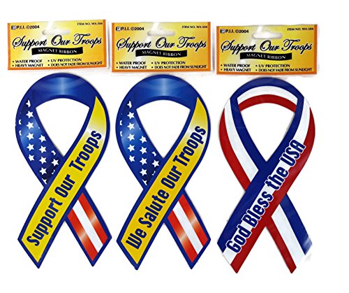 Support & Salute Our Troops God Bless USA Patriotic Military Car Ribbon Magnets Set (3)