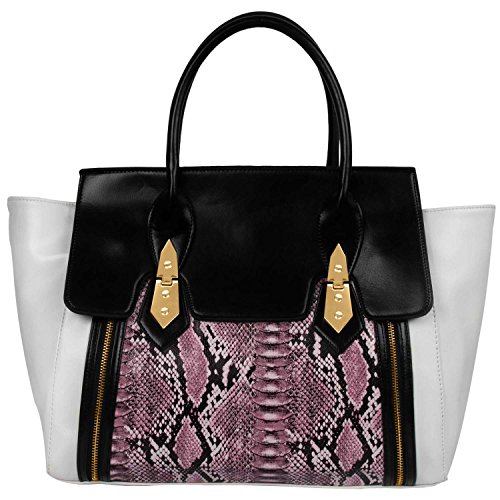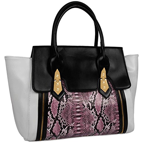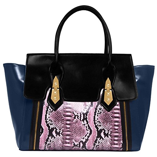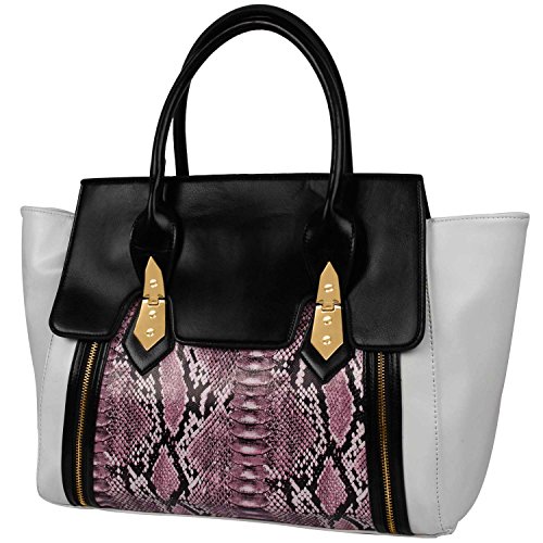 This uniquely designed snake skin textured trapeze style handbag by FASH will look extremely good on you no matter where you carry it with you. Its stylish exteriors and spacious fabric lined interior compartments with multiple inner wall pockets are sure to impress you. These wall pockets have been designed to port small essentials such as your car or apartment keys, mobile etc. Access your belongings more easily using its flap magnetic closure. The pink and black snake print patch on the anterior along with the two zipper pockets placed beside it, gives it an elegant look. So now it's time you update your wardrobe with a fashion purse that brings both modern style and classic elegance to any look at an extremely affordable price.