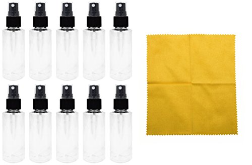 10 - 2 oz Clear PET Bottle with Black Fine Mist Sprayer & Microfiber Cloth