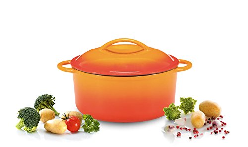 -. Feature : schwere Ausführung / für alle Herdarten / auch Induktions Kochfelder / 3,6 kg schwer / außen orange rot innen schwarz matt