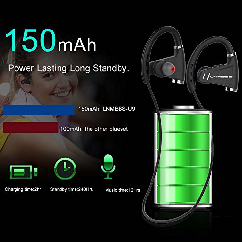 POWER LASTING LONG STANDBY: built in large capacity 150 mHA Li-ion battery, LNMBBS U9 sports Bluetooth wireless Bluetooth can deliver up to 12 hours of play time on a full charge.