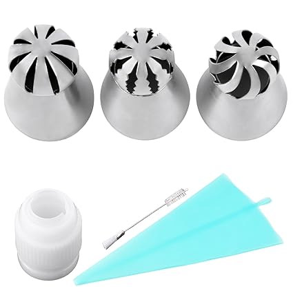 [Product Information]- PACKAGE QUANTITY: 8 sphere ball tips + 1 silicone pastry bag + 1 plastic coupler + 1 cleaning brush. This new version set saves your money, time and effort for your bakery creation. Just begin your DIY baking journey of dreams easily and happily.