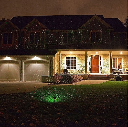 - Red&Green Mode Laser Light: Thousands of red and green stars are combined together, or separated by flickering, blinking spots scattered outside your house, branches, lawns, patios etc.