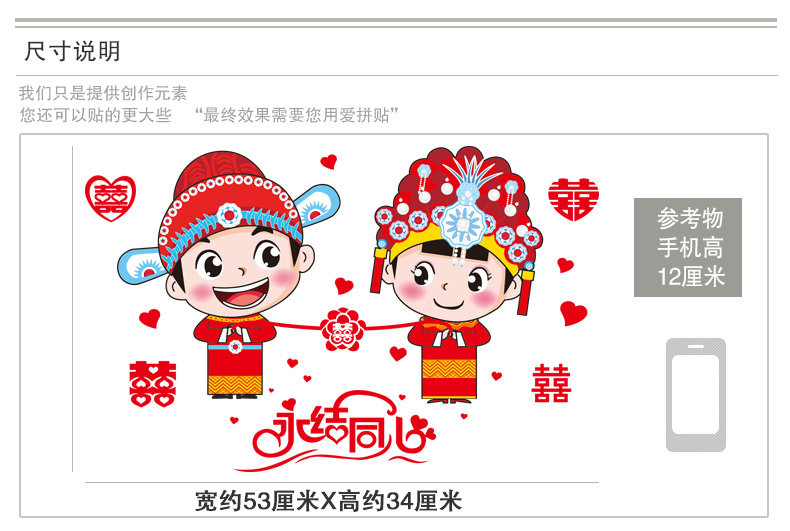 墙贴纸贴画婚房布置卧室房间床头装饰品结婚用品婚庆喜字永结同心