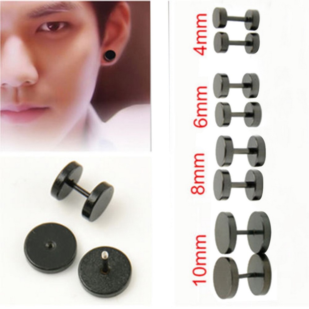 2015 New Fashion Round Barbell Shape Stainless Steel Men\'s Earring Punk Style Ear Studs