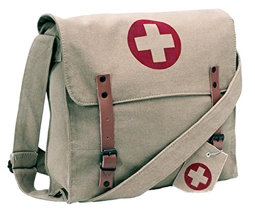 -. Title : Vintage WWII Look Khaki Canvas Medic Messenger Bag w/ Red Cross