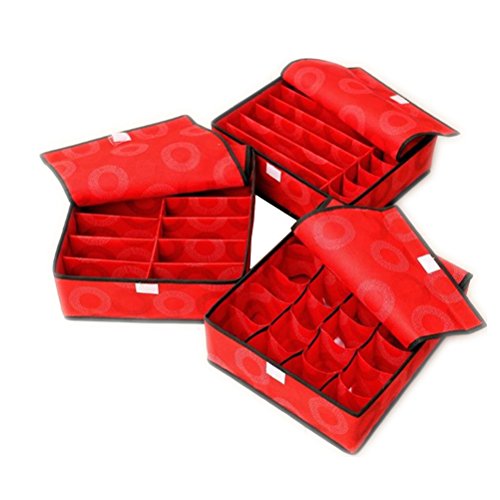 -. Title : Micy Drawer Dividers Closet Organizers Bra Underwear Storage Boxes 3 Set- Red Circle