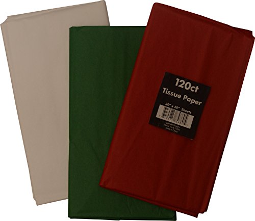 Christmas Tissue Paper Assortment; Red, Green & White; 20" X 20", 120 sheets