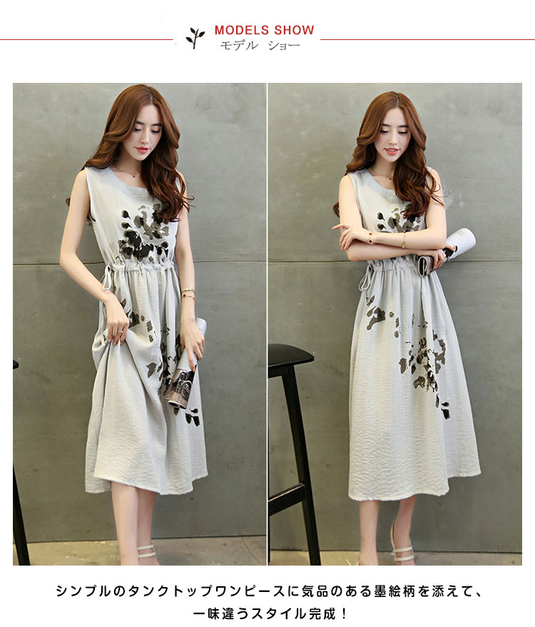| いつもの自分のひと違い!中国風墨絵プリントロングワンピース入荷しました。シンプルのタンクトップワンピースに気品のある墨絵柄を添えて、一味違うスタイル完成!滑らかな肌触り優しい上質素材で、着心地バツグン!ウェスト紐でサイズ調整可能まるでオーダーメードのような着用感デイリー使いは勿論、通勤やちょっとお出かけもお勧め! | |