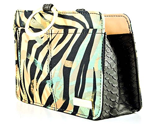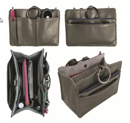 Product Description The Pouchee Mod is a compact, yet spacious version of the Pouchee Purse Organizer. It comes with credit card slots on the inside for easy access, and a zippered pockets to hold money and change. There's room for other essentials like eyeglasses or sunglasses, cell-phone, keys, pens, tissues, lipsticks, a check book, and more. The snap at the top adds security! Dimensions: Width: 7.5" x Height: 5.5" x Depth: 3.5" 0