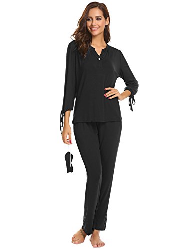 -. Title : PEATAO Women’s Soft Pajama Sets Long Sleeve Elastic Waist Sleepwear Set With Eye Mask