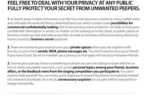 - Title : iCarez® [Secret Series] 4 Way 360 Degree Privacy Highest Quality Premium Screen protector for Samsung Galaxy S5 Anti-spy anti-glare anti-fingerprint (Matte) & anti-Scratch & bubble-free & washable Screen Protector **PET Film Made in Japan** Easy install & Green healthy Product with Lifetime Replacement Warranty [1-Pack]- Retail Packaging 2014