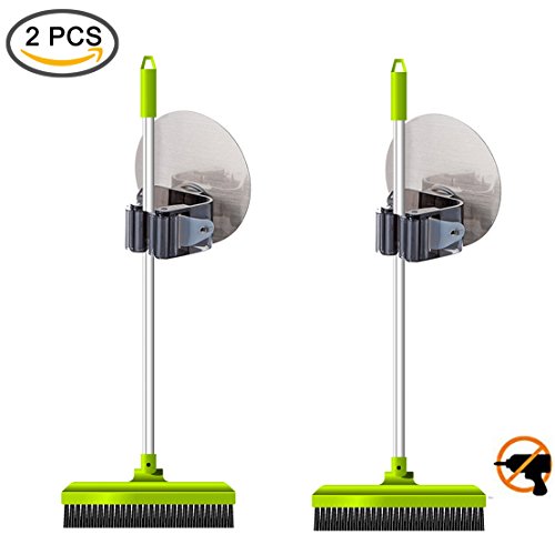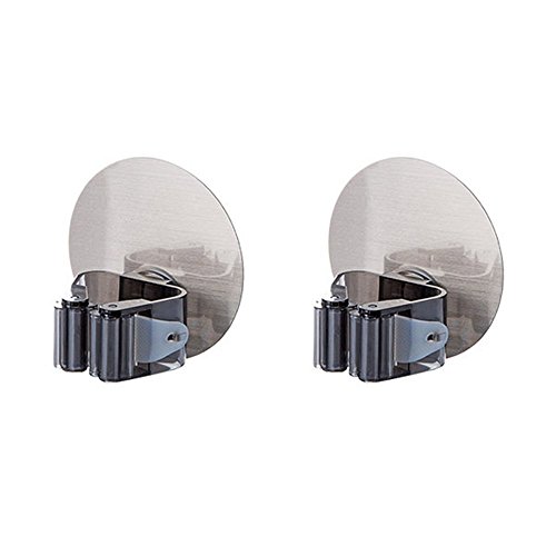 HomeStyleZ Self Adhesive Broom and Mop Holder, Reusable Mop Rack Holder Wall Suction Hooks Organizer for Bathroom and Kitchen (Oval, Black-2pcs)