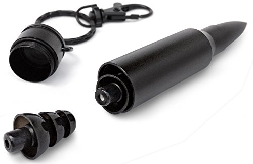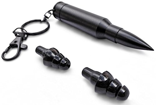 WATERPROOF BLACK BULLET CASE holds one pair of earplugs either with or without the nub extension. Anodized aluminum construction. Comes with a key chain and a clip so you always have your protection on hand.