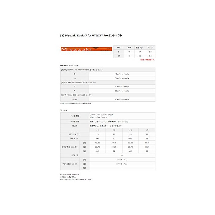 원본상품명: DUNLOP(ダンロップ) ユティリティ SRIXON Z U65 ユティリティ Miyazaki Kaula7 for UTILTY カボンシャフト