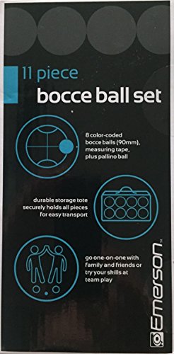 Studio : MerchSource LLC Publisher : MerchSource LLC Binding : Misc. Product Description - Includes 8 bocce balls, measuring tape, pallino ball and storage tote. - Go one-on-one with family and friends or try your skills at team play. - Score points by landing your bocce balls as close to the pallino as possible. 0