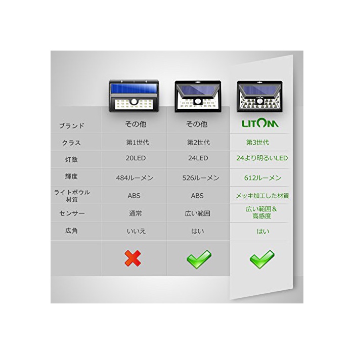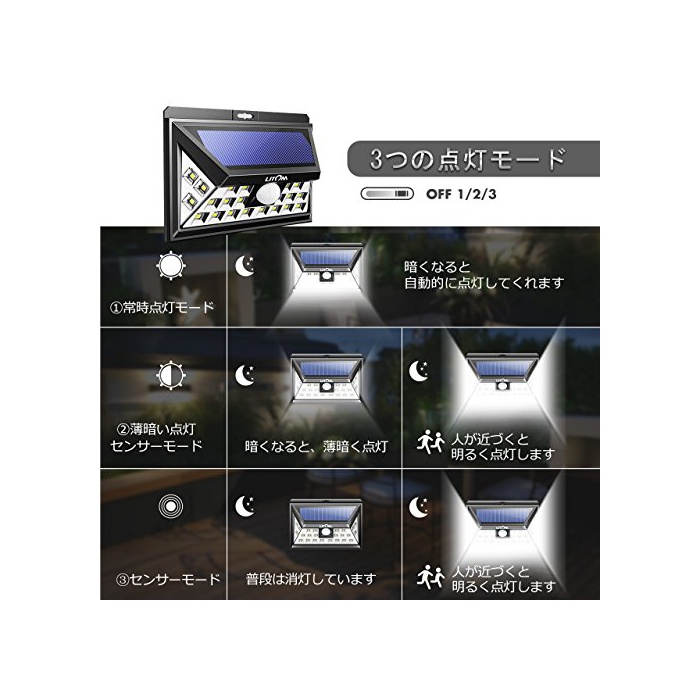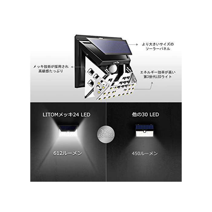 원본상품명: Litom ソラライト センサライト 24LEDメッキ 角ライト 玄入口/屋外照明/軒先/ガデン/駐車場などに適用(2点セット)