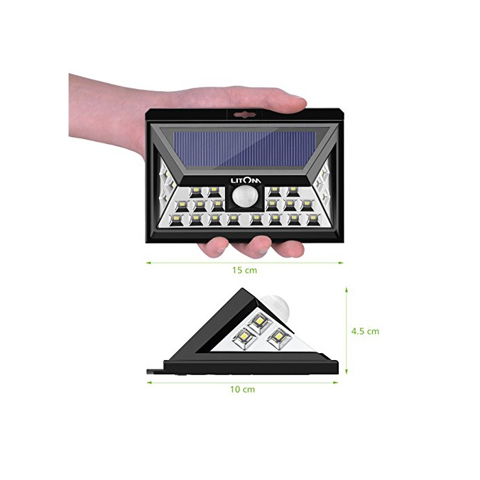 Litom 솔라 라이트 센서 라이트 24LED도금 광각 라이트 현관 입구/옥외 조명/처마 끝/가든/주차장 등에 적용(2점 세트)