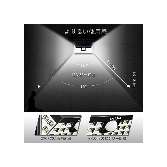 270도 광각 조명:반구상의 induct가 채용되고, 이전의 센서 기능보다(부터),최대 약10m의 범위의 움직임을 검출할 수 있고, 방범용이라면 거듭 적용합니다.
