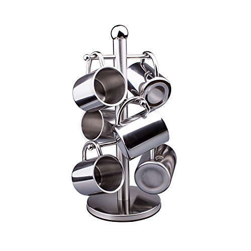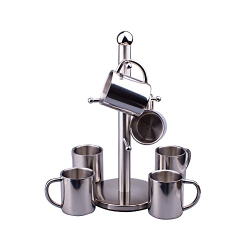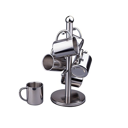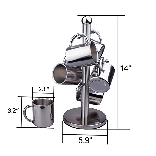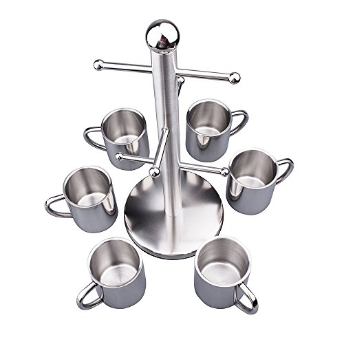 -. Brand : IMEEA -. Color : Silver -. Feature : Brushed double-wall design with contour holding ear for better heat insulation. Protects you from getting scalded by hot water and keeps liquid cooler or warmer longer / Comes with a stand holder. Organise the cups when not in use, makes your table neat and it is convenient for you to take whenever you want / Extremely thick and durable stainless steel, unbreakable, recyclable and dishwasher safe. Low-Maintenance and Eco-Friendly / Great Value: Packed with 1 stand holder + 6 cups. Entertain Guests With Style. Perfect for family, parties, office and camping. Serving for coffee, juice, milk or any other drinks / Dimensions: Stand 5.9''(D), 14''(H), Cups: 2.8''(D), 3.2''(H); Capacity per cup: 220ml / 7.8oz; N.W.: 2.9pounds -. Label : IMEEA -. Manufacturer : IMEEA -. MPN : 098 -. PartNumber : 098 -. ProductGroup : Kitchen -. ProductTypeName : KITCHEN -. Publisher : IMEEA -. Studio : IMEEA -. Title : IMEEA® Brushed Stainless Steel Double Wall Coffee Mug Tree Tea Cups Kids Cups W/ Stand Holder, 220ml / 7.8oz, Set of 6
