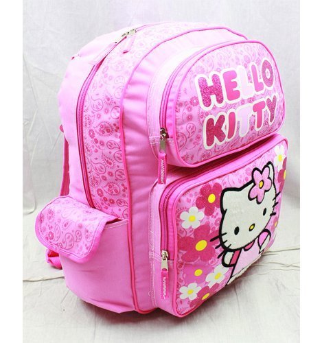 She'll impress her friends with the sweet style of this girls' Hello Kitty backpack in pink. Size 16x12x5 inches.