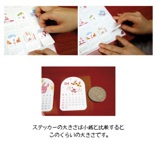 ぶたうさぎの色んな表情が可愛いカレンダースティッカー☆(2012年度) 1か月ごとのシールになっているので、どこでも好きなところに貼って楽しめます! 【サイズ】17.5×19cm 【内容】12か月1シート(2012年度) 【メーカー】ドリームトイ