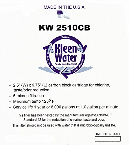 -. Binding : Tools & Home Improvement -. Brand : KleenWater -. Color : white -. EAN : 0609053918364 -. Feature : G.E. Smartwater compatible kit which includes 2 carbon block cartridges and 2 o rings / The 2.5 X 9.34 inch carbon block cartridges are made in the USA / Free USPS P.R.Iority Mail Shipping for quick delivery / Provides "bottle quality" water without the expense and pollution / A "Low Cost High Qulaity" alternative -. Label : KleenWater -. Manufacturer : KleenWater -. Model : KW1000RC/KWGE25RG-Qty(2) -. MPN : KW1000RC/KWGE25RG-Qty(2) -. PartNumber : KW1000RC/KWGE25RG-Qty(2) -. ProductGroup : Home Improvement -. ProductTypeName : PLUMBING_FIXTURE -. Publisher : KleenWater -. Studio : KleenWater -. Title : Two Alternative Replacement Carbon Block Water Filter Cartridges for FXSVC Installed in Model GXSV10C with 2 O-rings -. UPC : 609053918364