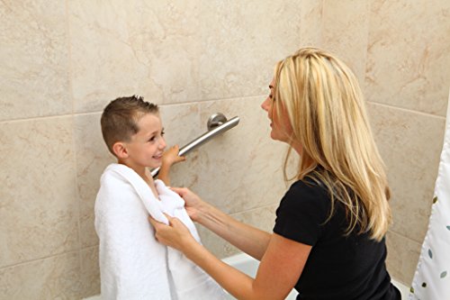-. Feature : 16-Inch curved decorative grab bar with grips prevents falls and enhances independent living / Features no-slip rubber nubby grips and is ADA compliant supporting up to 500lbs / Includes mounting hardware; (2) LiveSafe anchors, (6) screws and (2) flanges for hollow wall and stud mount applications / Supports up to 500lbs and can mount to drywall, tub surrounds, tile, marble, fiberglass, cement board or combination up to 1 3/4-inch thick / Rust free; non-corrosive stainless steel construction ensures no rust