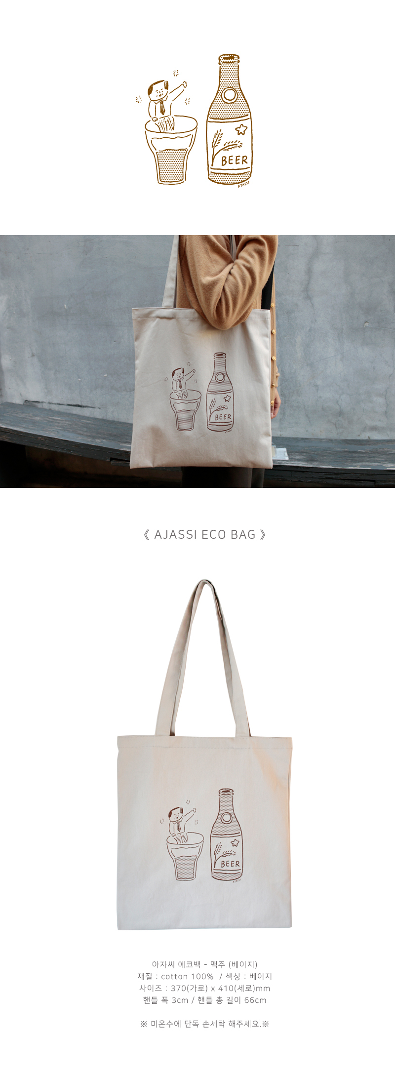 도톰한 베이지 트윌 원단의 에코백입니다.