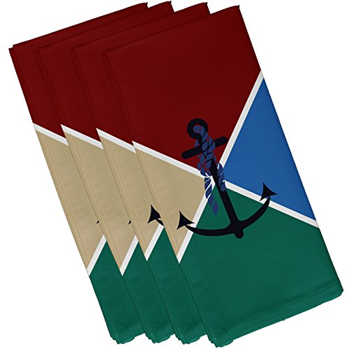 E by design Anchor Flag, Geometric Print Napkin, 19 x 19", Red