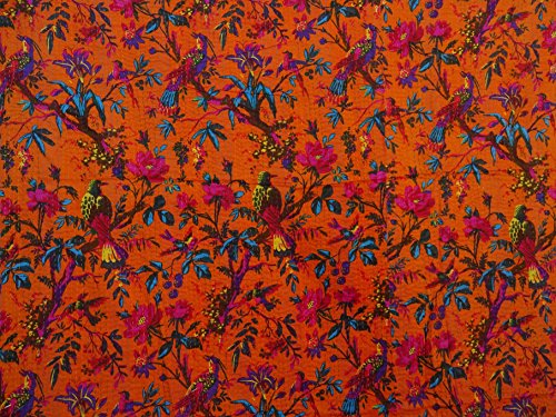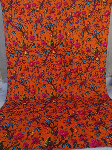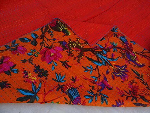 Tribal Asian Textiles Indian Reversible Kantha Quilt Handmade Bedspread Twin Size Throw Bird Print