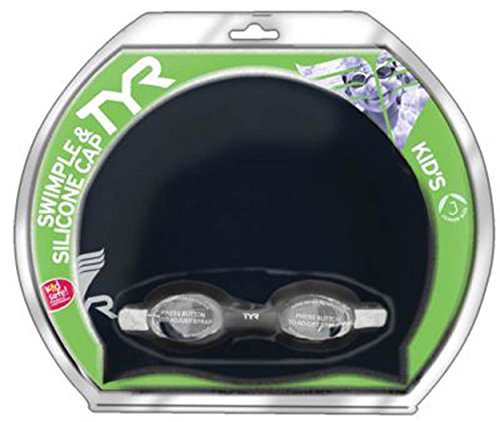 TYR Youth Swimples Splash Cap & Goggles Pack, Black/Black - Clear Lens