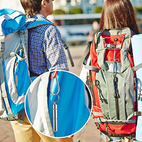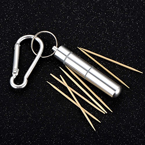 Features Benefits: Waterproof sealed: Toothpick case with a silicone rubber seal,it can keeping your toothpicks or other small items clean, dry and handy.Non-toxic,non-allergenic,keeping your toothpicks,cotton swabs and other items clean Multiple Purpose: Pocket toothpick holder not only can store toothpicks, swabs, pills, other small items, but also a sweet gift for your friends or families. A must have for travelers and a great Executive Gift. Easy to store and carry This toothpick holder is made of aluminium alloy and with portable pocket style, it is convenient to store, also easy to carry with mini key ring, you can hang it on keychain or bag. Specifications: Toothpick holder material: aluminum alloy Toothpick holder size: 7.2 cm/ 2.8 inch x 1.4 cm/ 0.6 inch x 1.4 cm/ 0.6 inch Toothpick holder color: silve Package includes: 2 x Toothpick holder Note: Please notice the exact length to avoid beyond your expectation. 0