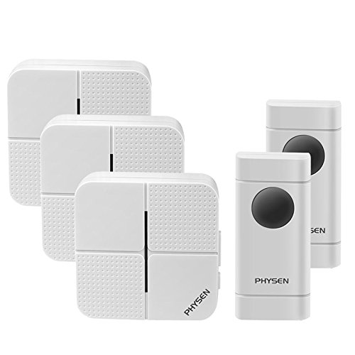 -. Title : PHYSEN Mini Waterproof Wireless Doorbell kit with 2 Push Buttons and 3 Plugin Receivers,Operating up to 500 Feet Range,4 Adjustable Volume Levels and 52 Chimes,No Battery Required for Recevier