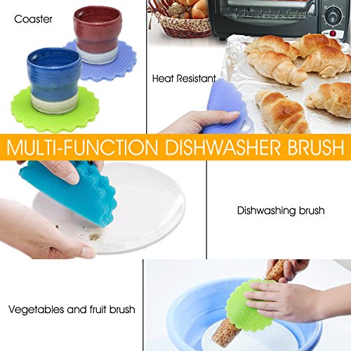 - Multifunctional: You can use this silicone brush for washing dishes, plates, fruit, vegetable and so on, also it can use as a heat insulation mat. Reusable and tasteless.