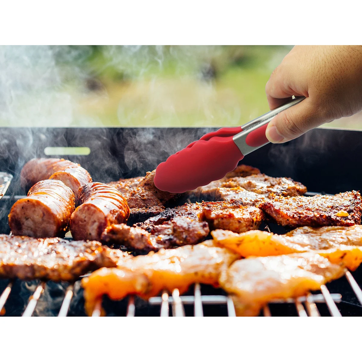 The Barbeque handles have soft ergonomic grips」ャ easy to storage and clean up is a breeze - simply wipe under hot water or throw them in the dishwasher. Stainless steel metal with heat resistance. Non-Stick silicone tips. Superior to wooden or disposable tongs. Silicone is better than plastic or rubber coated tips.