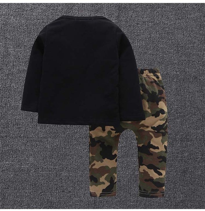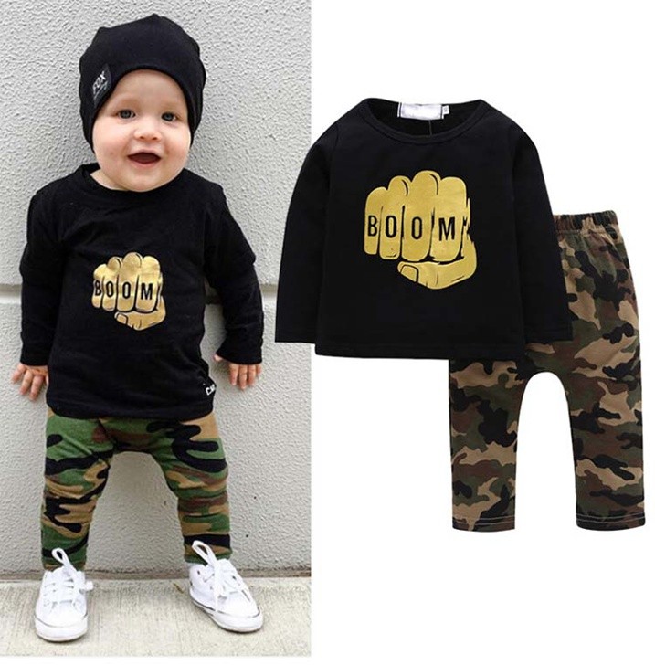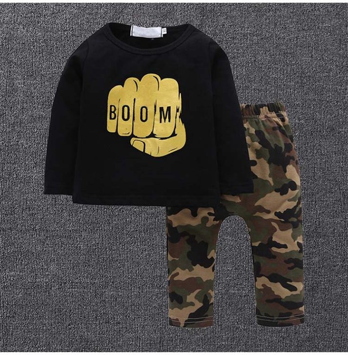 【製品仕様】■商品名上下セット 男の子 セットアップ キッズ 長袖シャツ ロングパンツ BOOM■商品説明・ゴールドのプリント付きTシャツと迷彩柄ズボンの可愛いセット。・遊び着としてはもちろん、ウエストゴムで着心地抜群だから、パジャマとしてもおススメ。■サイズ80cm 90cm 100cm 110cm 120cm ■素材 コットン■色#1ブラック×カモフラ「検索キーワード」子供服 上下セット セットアップ 2点セット 男の子 キッズ ボーイズ ロンT 長袖Tシャツ プリントTシャツ ロングパンツ 長ズボン 迷彩柄 カモフラ 幼稚園 保育園 パジャマ 部屋着 ルームウェア