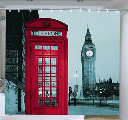 Efivs Arts Waterproof Anti-mildew Shower Curtain with Hooks 72-Inch by 72-Inch Red Telephone Booth Pattern