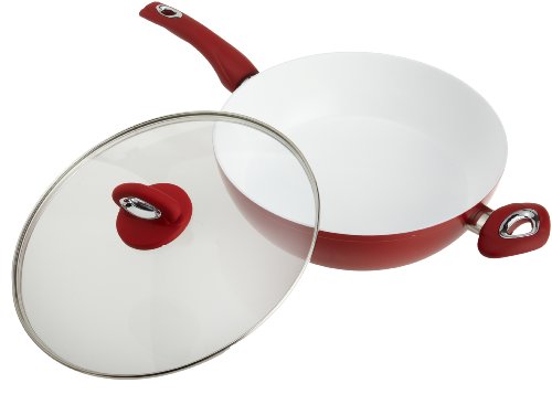 The saute pan has a white nano-ceramic nonstick coating that allows excellent monitoring of food while cooking. It is also a stain resistant nonstick that's easy to clean.