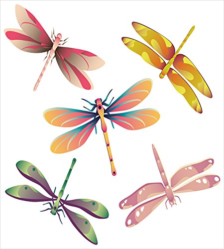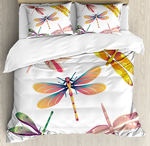 (Ambesonne)/Bedding Bath/Bedding/DIRECT FROM USA/Dragonfly Queen Size Duvet Cover Set by Ambesonne, Five Spiritual Bugs in Modern Abstract Patte...