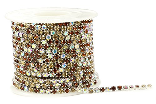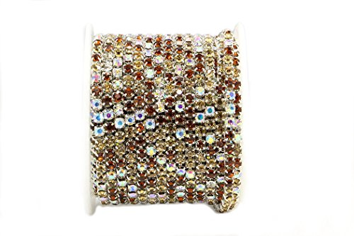 THREE TO ONE Rhinestone Crystal Claw Chain Clear Beaded Trim Sewing Craft for DIY crafting 32.8 Feet Deep&light coffee color Mixed Jewels 3MM