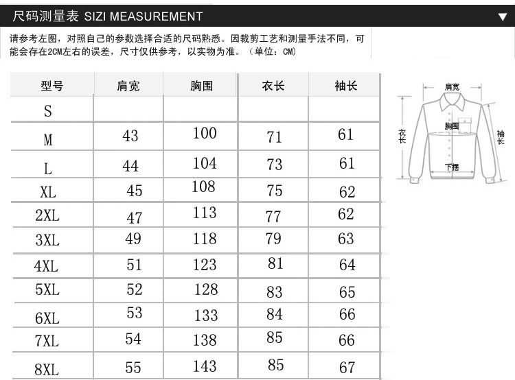 请量一下平时穿的衬衫,扣好扣子平铺地上量腋窝下的距离,乘以2)