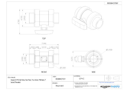 Hayward TB2200ST TB Series CPVC Ball Valve, True Union, FPM Seals, 2" Socket and Threaded Connections